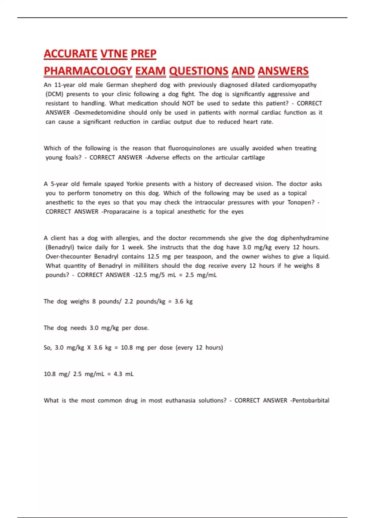 PHARMACOLOGY EXAM QUESTIONS AND ANSWERS