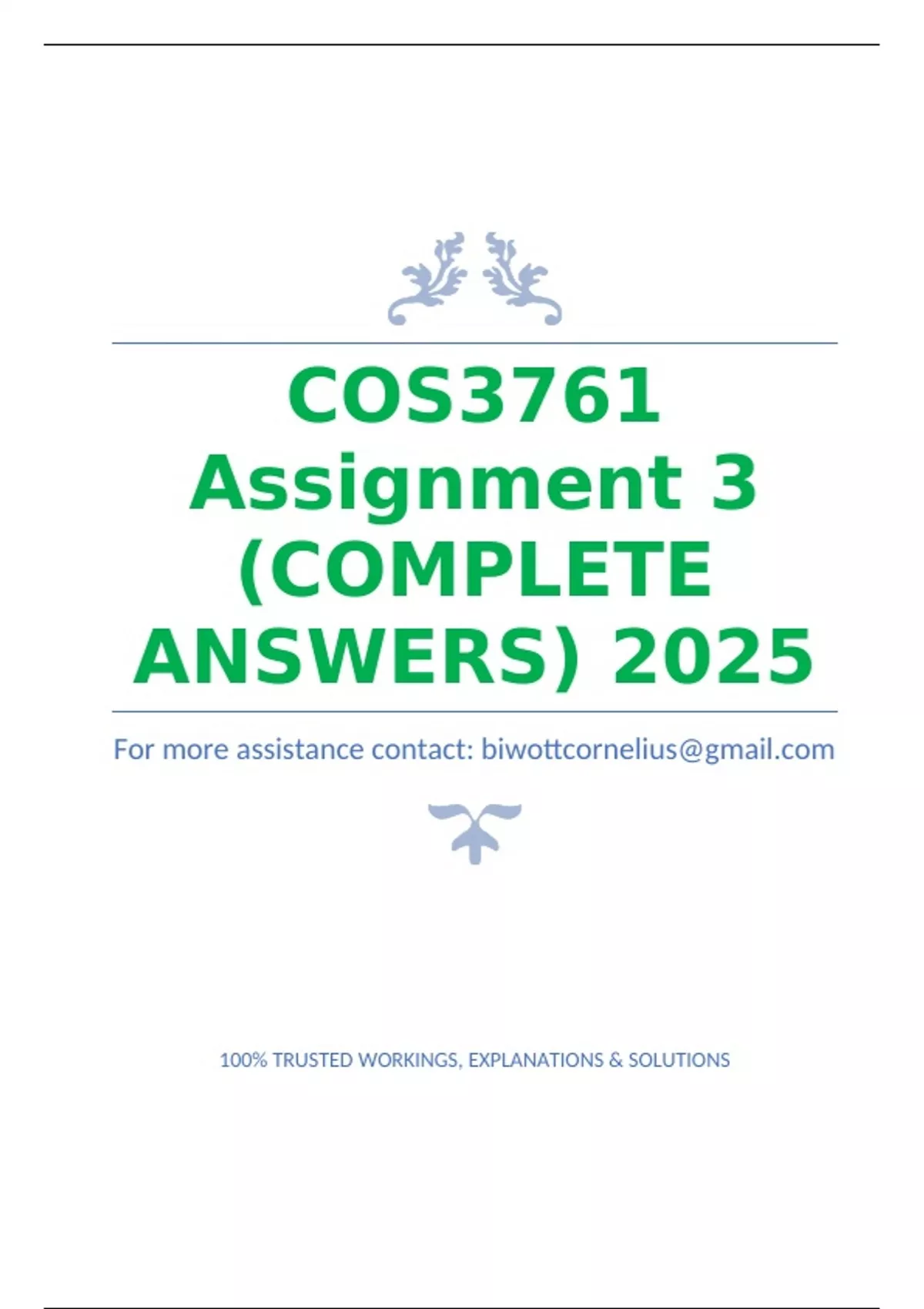 COS3761 Assignment 3 (COMPLETE ANSWERS) 2025