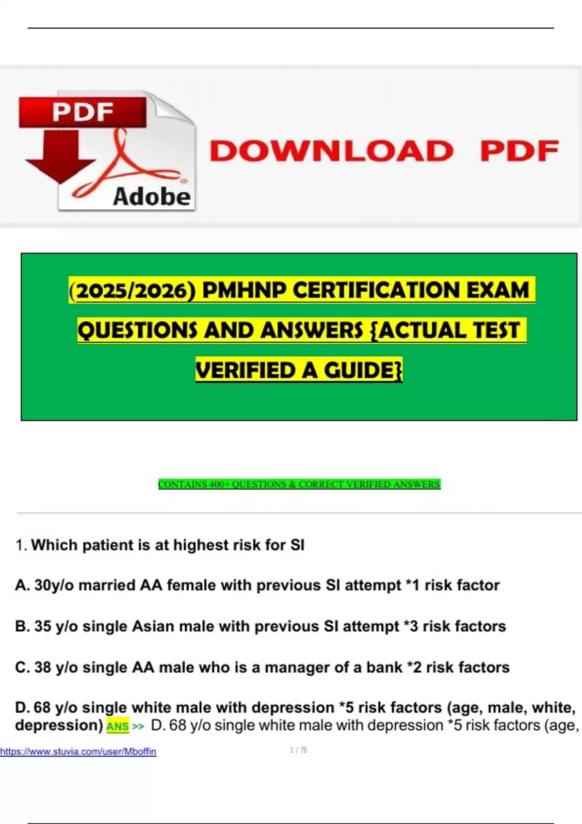 depression) ANS >> D. 68 y/o single white male with depression *5 risk factors (age,