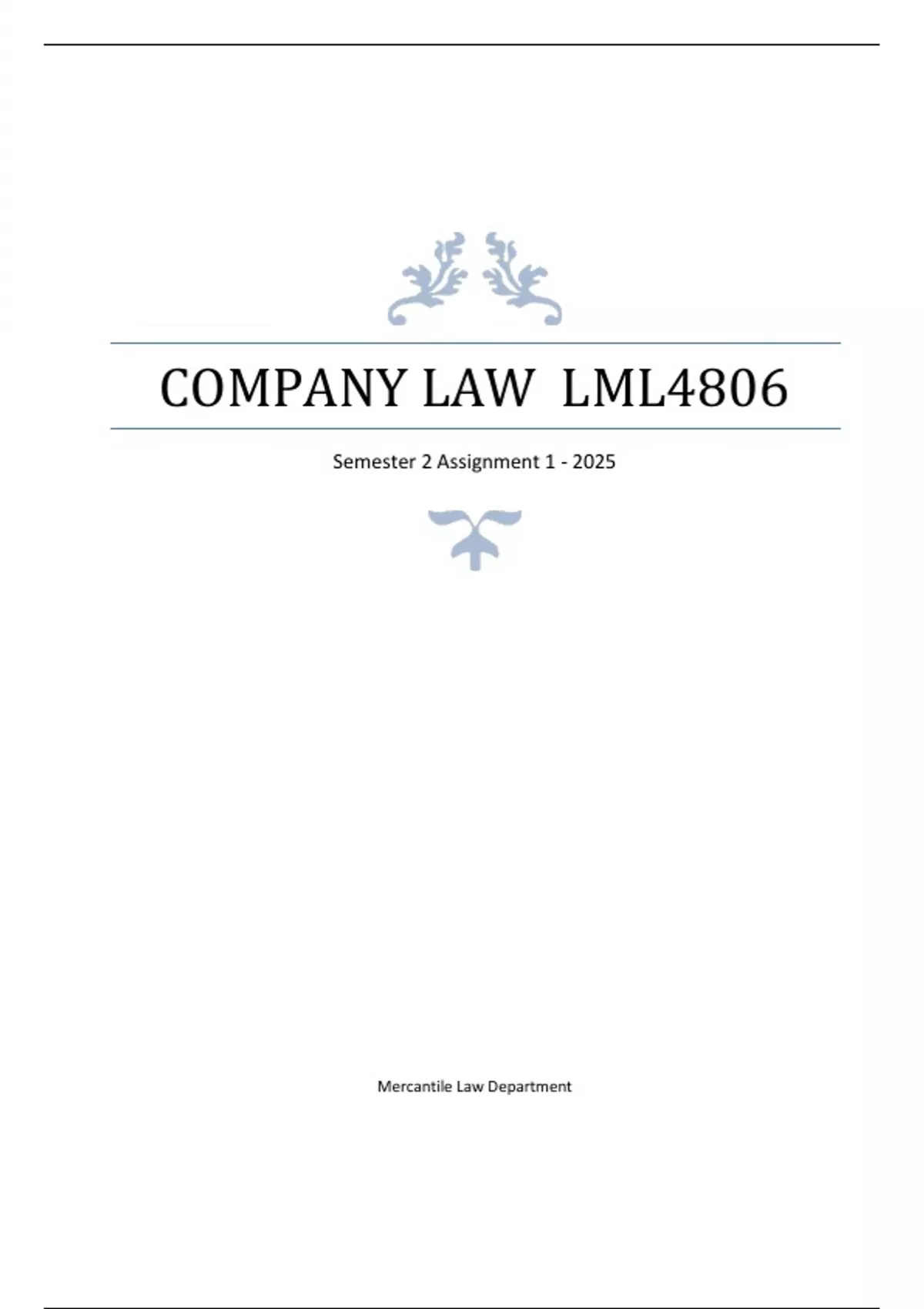 , Company Law LML4806 Semester 2 Assignment 1 - 2025 Mercantile Law