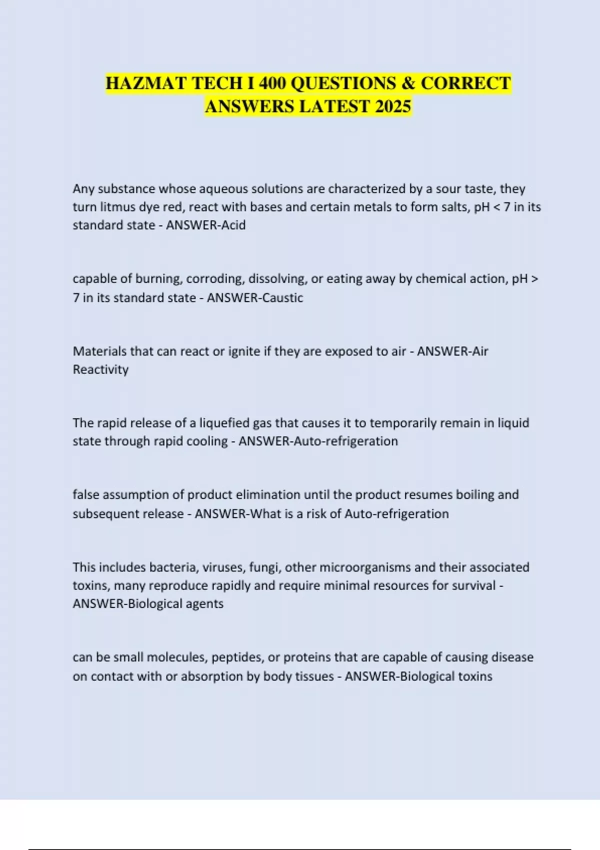 HAZMAT TECH I 400 QUESTIONS & CORRECT