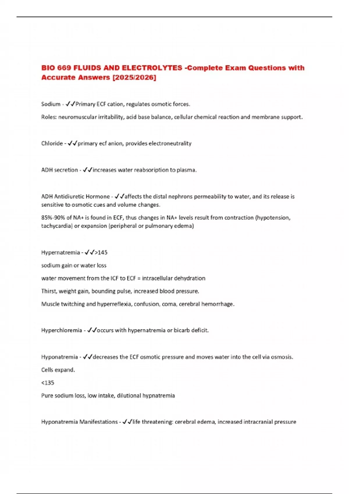 BIO 669 FLUIDS AND ELECTROLYTES -Complete Exam Questions with Accurate Answers [2025/2026]