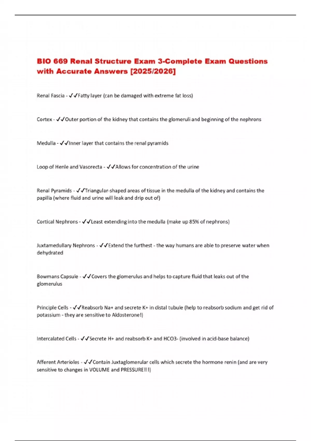 BIO 669 Renal Structure Exam 3-Complete Exam Questions with Accurate Answers [2025/2026]