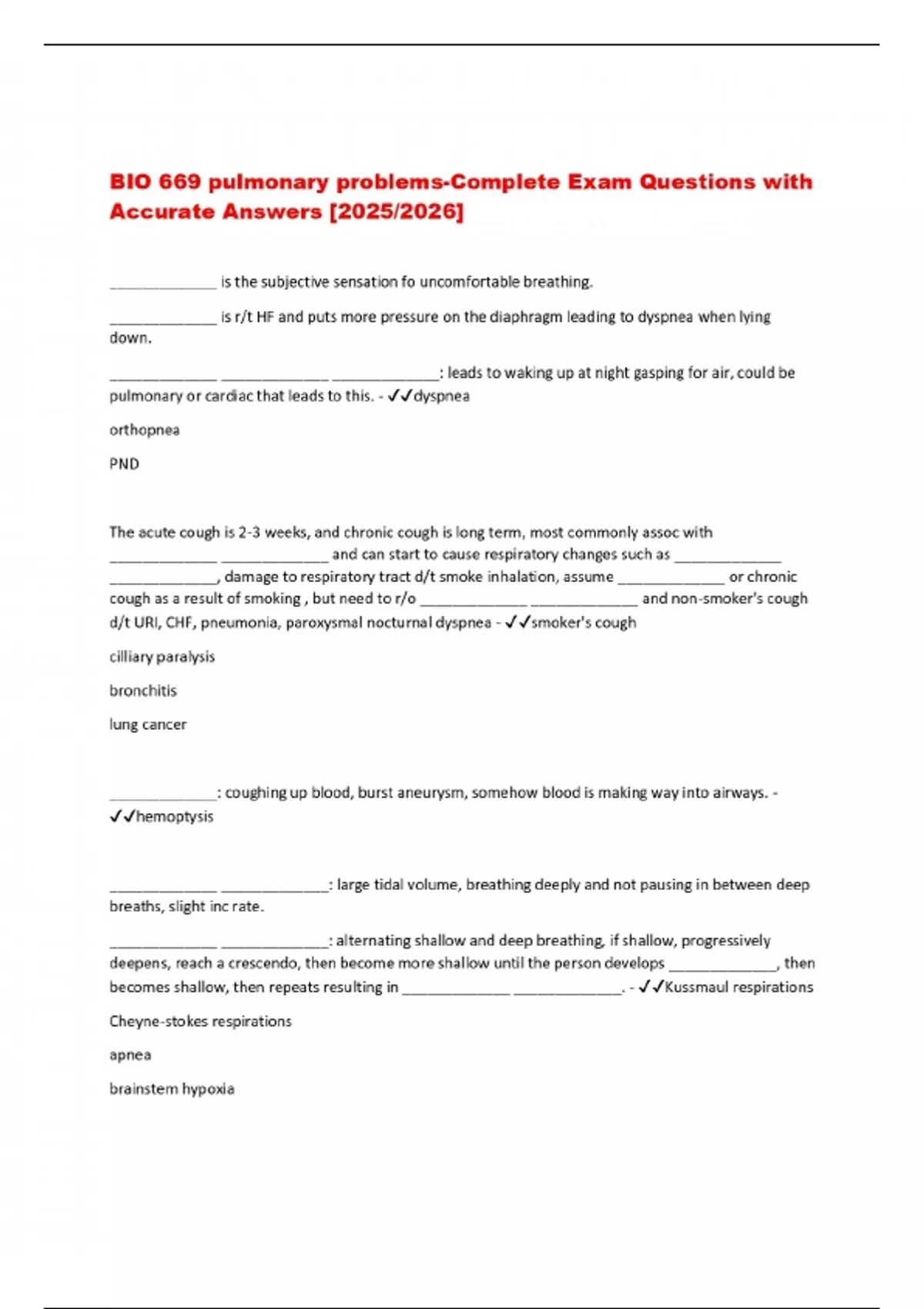 BIO 669 pulmonary problems-Complete Exam Questions with Accurate Answers [2025/2026]