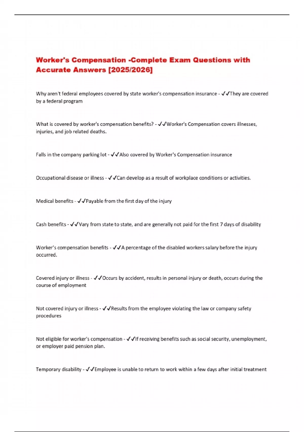 Worker's Compensation -Complete Exam Questions with Accurate Answers [2025/2026]
