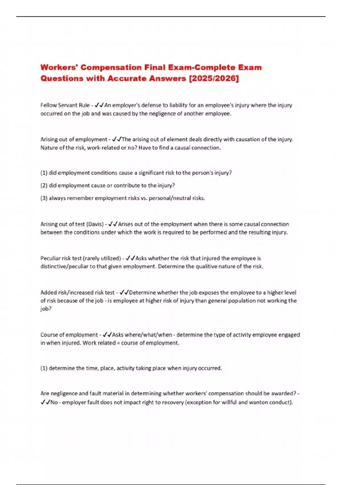 Workers' Compensation Final Exam-Complete Exam Questions with Accurate Answers [2025/2026]