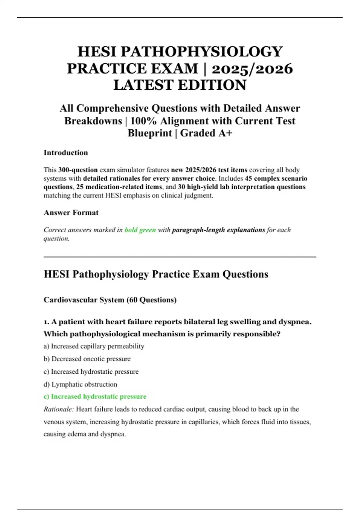 HESI Pathophysiology Practice Exam Questions