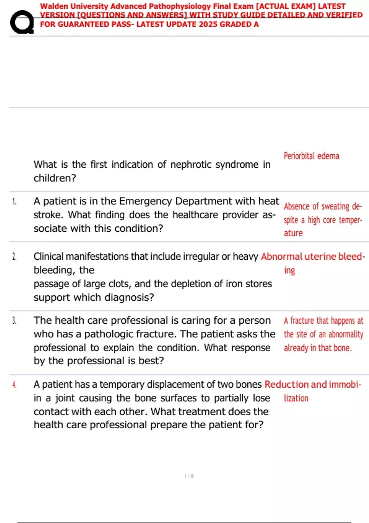 , Walden University Advanced Pathophysiology Final Exam [ACTUAL EXAM] LATEST