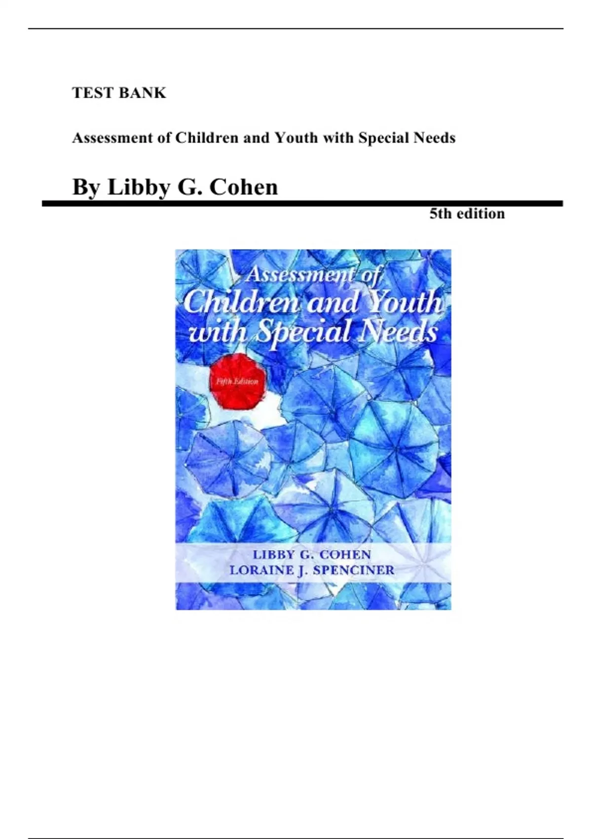 Test Bank for Assessment of Children and Youth with Special Needs, 5th edition, By Libby G. Cohen |Chapter 1-18