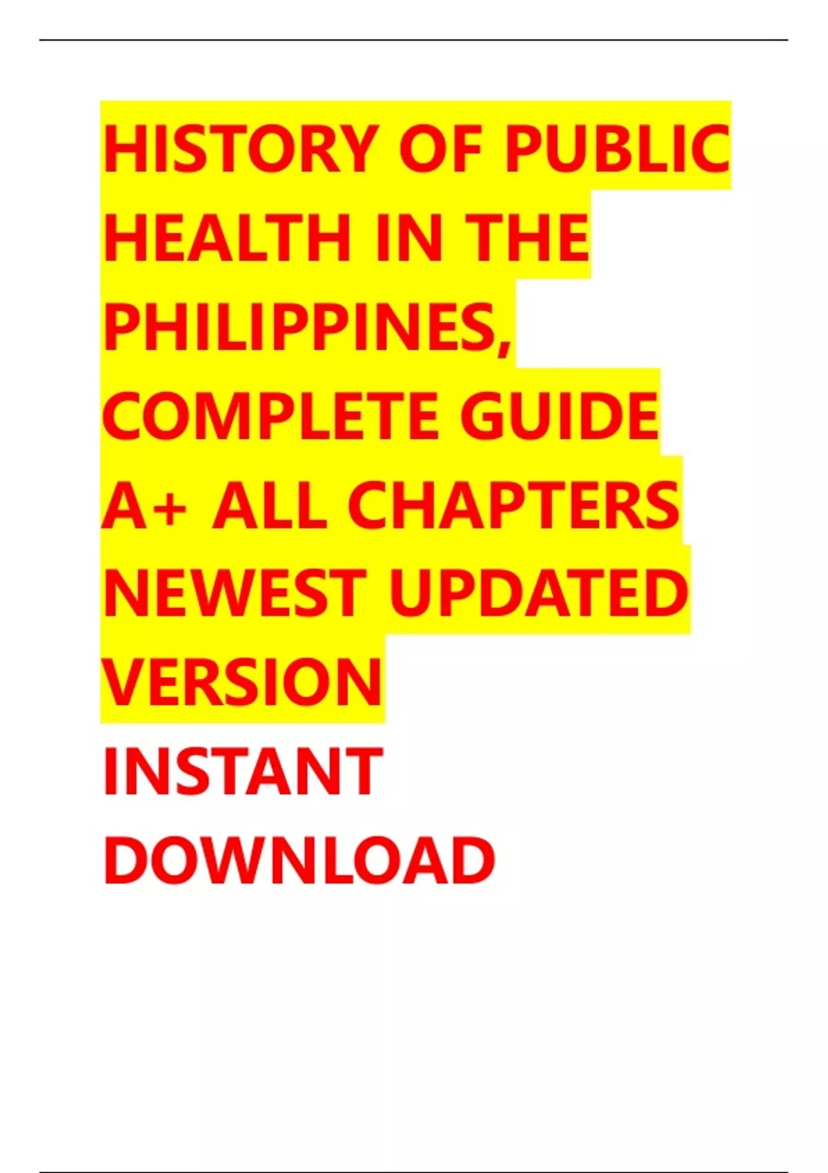 HISTORY OF PUBLIC HEALTH IN THE PHILIPPINES, COMPLETE GUIDE A+ ALL CHAPTERS NEWEST UPDATED