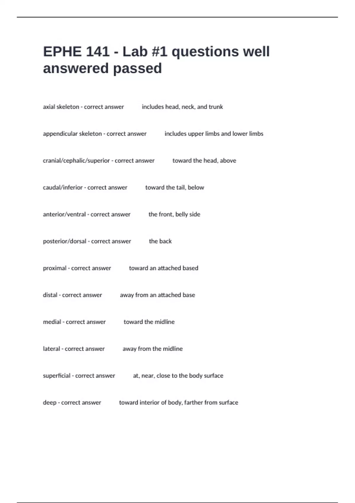 EPHE 141 - Lab #1 questions well answered passed