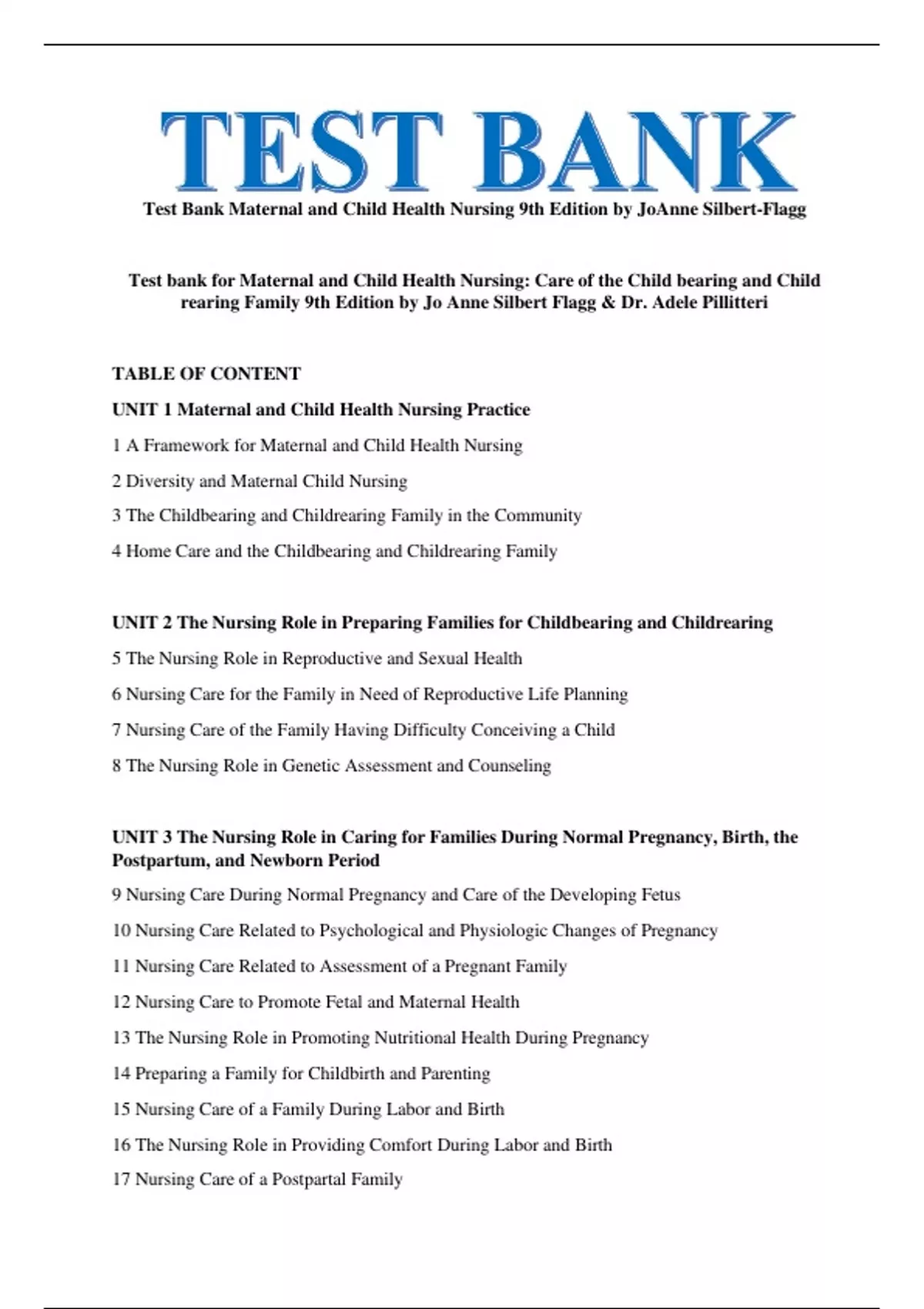 Maternal and Child Health Nursing Test Bank JoAnne Silbert-Flagg 9th Edition Nursing Exam Questions and Answers Prenatal and Postpartum Care Test Bank Pediatric Nursing Test Questions NCLEX Maternal-Child Health Pre