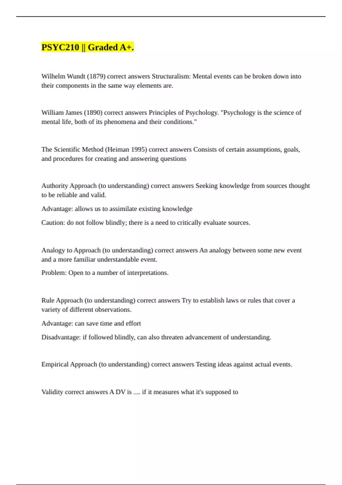 Wilhelm Wundt (1879) correct answers Structuralism: Mental events can be broken down into