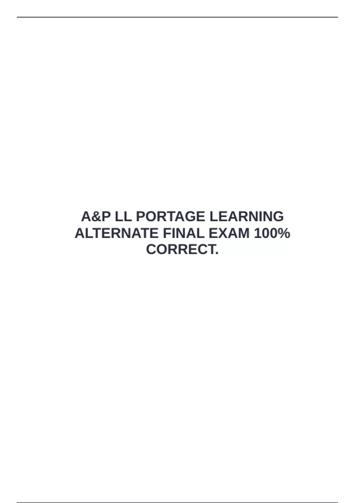 A&P LL PORTAGE LEARNING ALTERNATE FINAL EXAM 100% CORRECT.