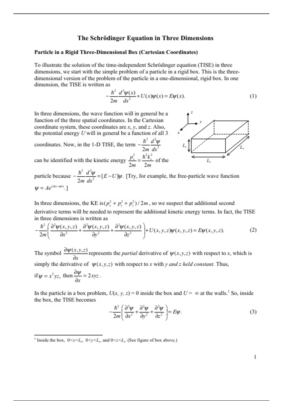 Particle in a Rigid Three-Dimensional Box (Cartesian Coordinates)