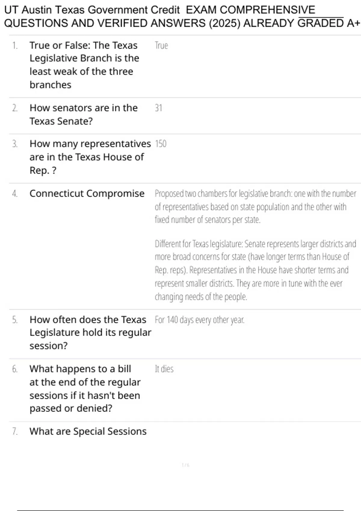 UT Austin Texas Government Credit EXAM COMPREHENSIVE QUESTIONS AND VERIFIED ANSWERS (2025) ALREADY GRADED A+