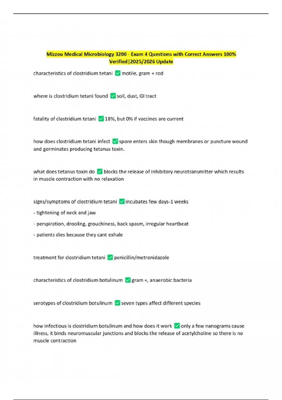 Mizzou Medical Microbiology 3200 - Exam 4 Questions with Correct Answers 100% Verified|2025/2026 Update