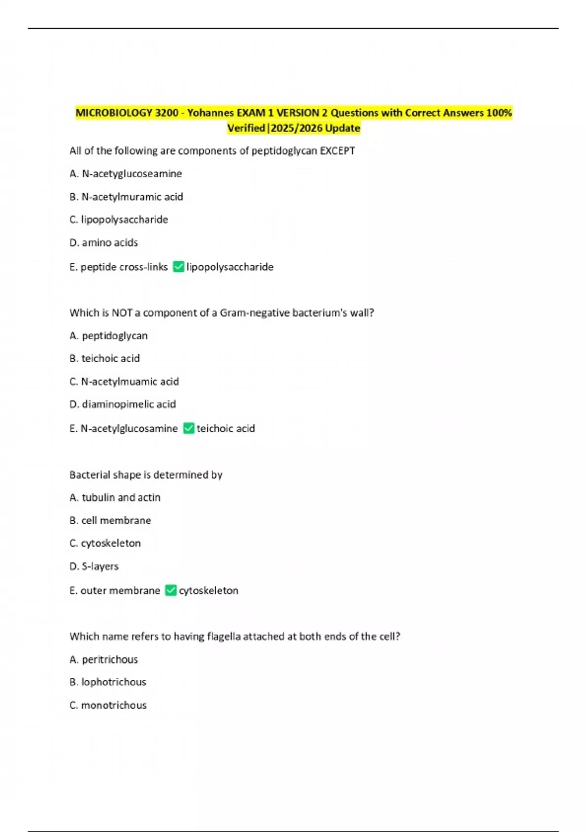 MICROBIOLOGY 3200 - Yohannes EXAM 1 VERSION 2 Questions with Correct Answers 100% Verified|2025/2026 Update
