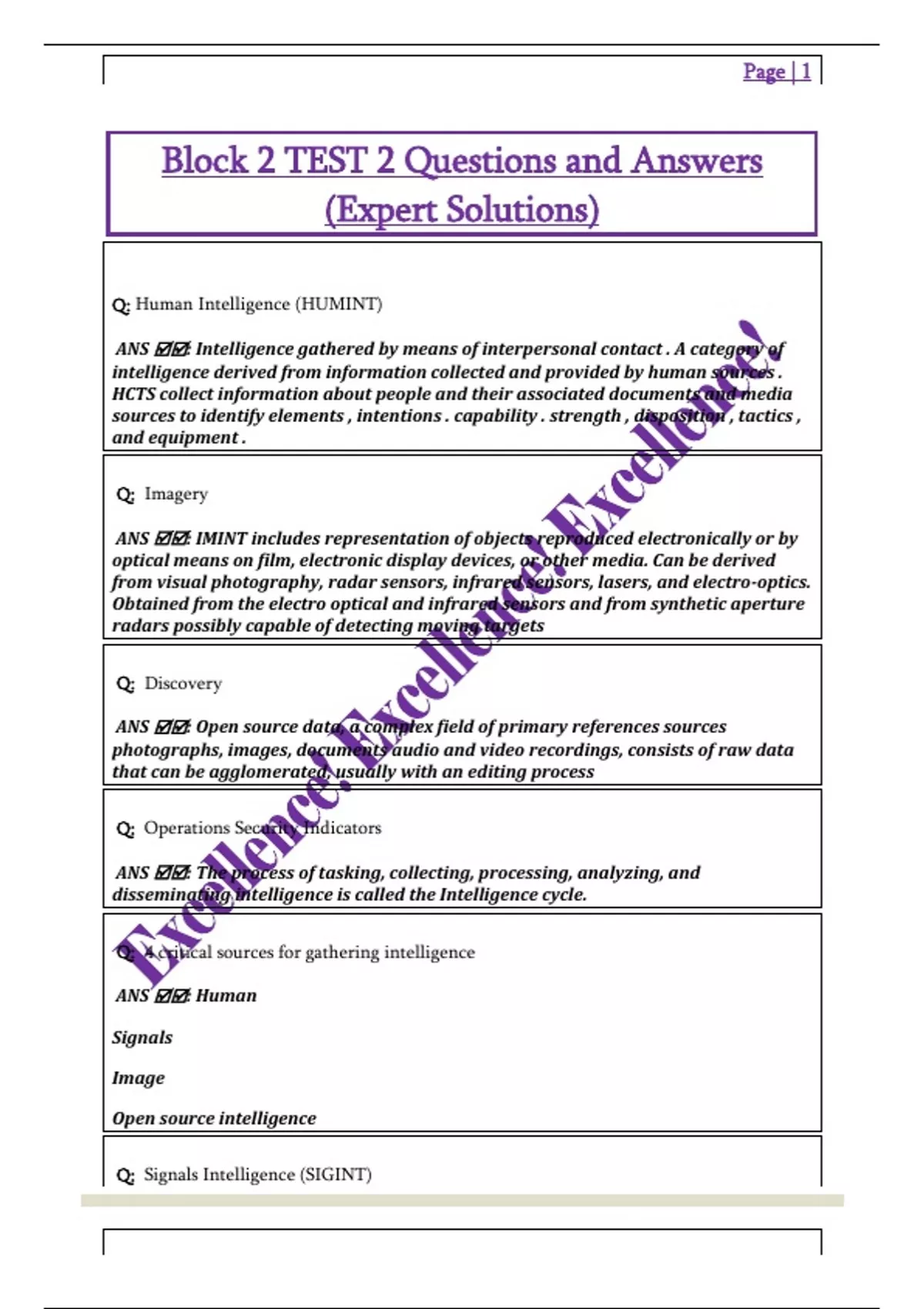 ANS 🗹🗹: Signal intelligence is gathered from various sources including foreign