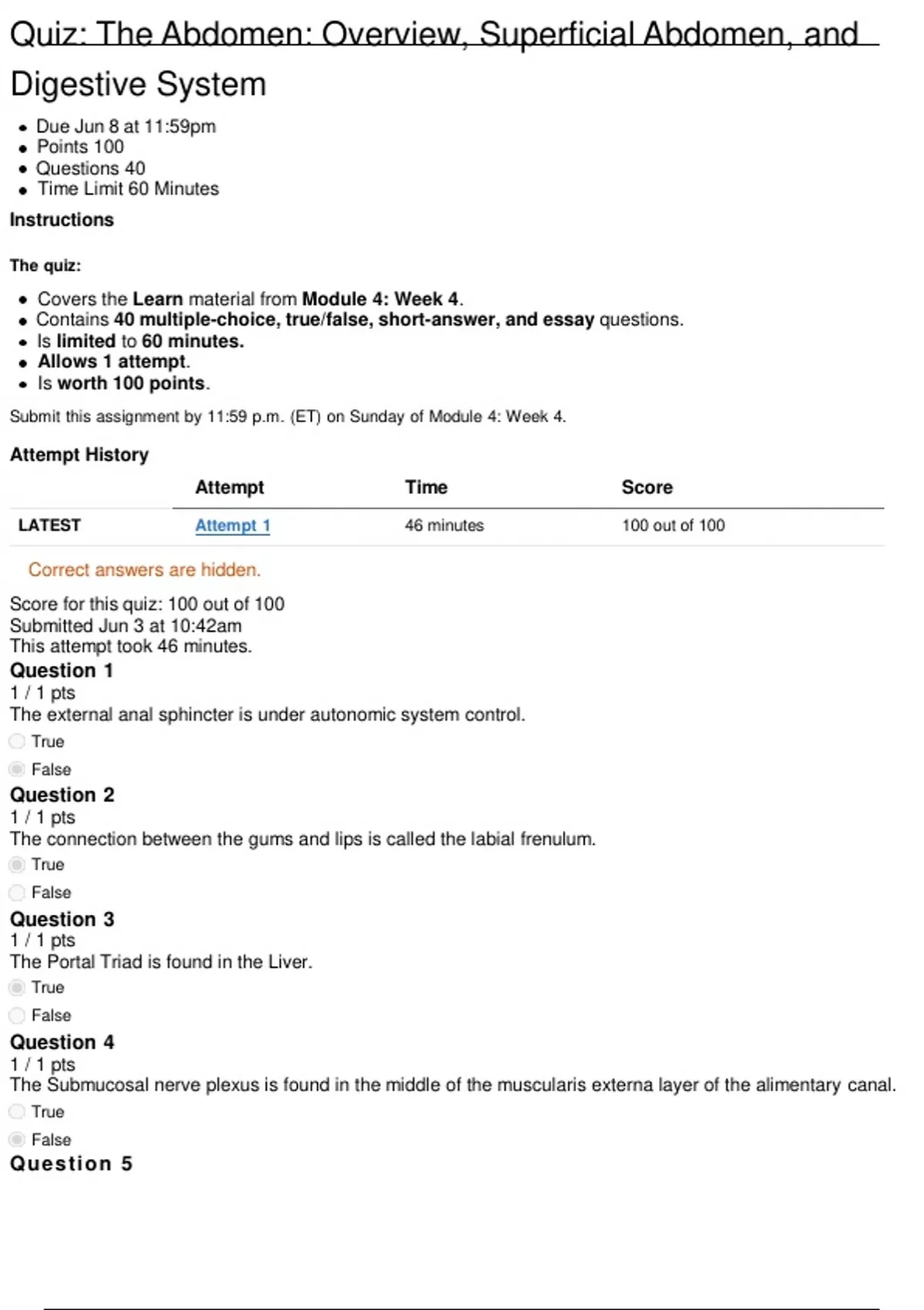 LATEST Attempt 1 46 minutes 100 out of 100