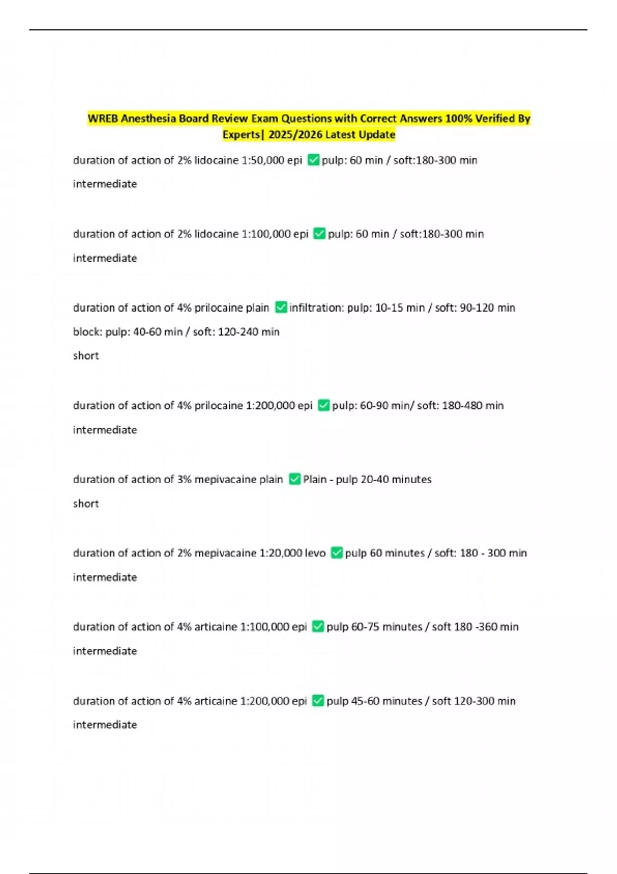 WREB Anesthesia Board Review Exam Questions with Correct Answers 100% Verified By Experts| 2025/2026 Latest Update
