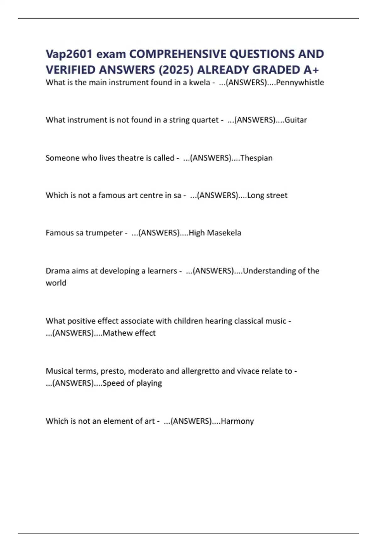 Vap2601 exam COMPREHENSIVE QUESTIONS AND