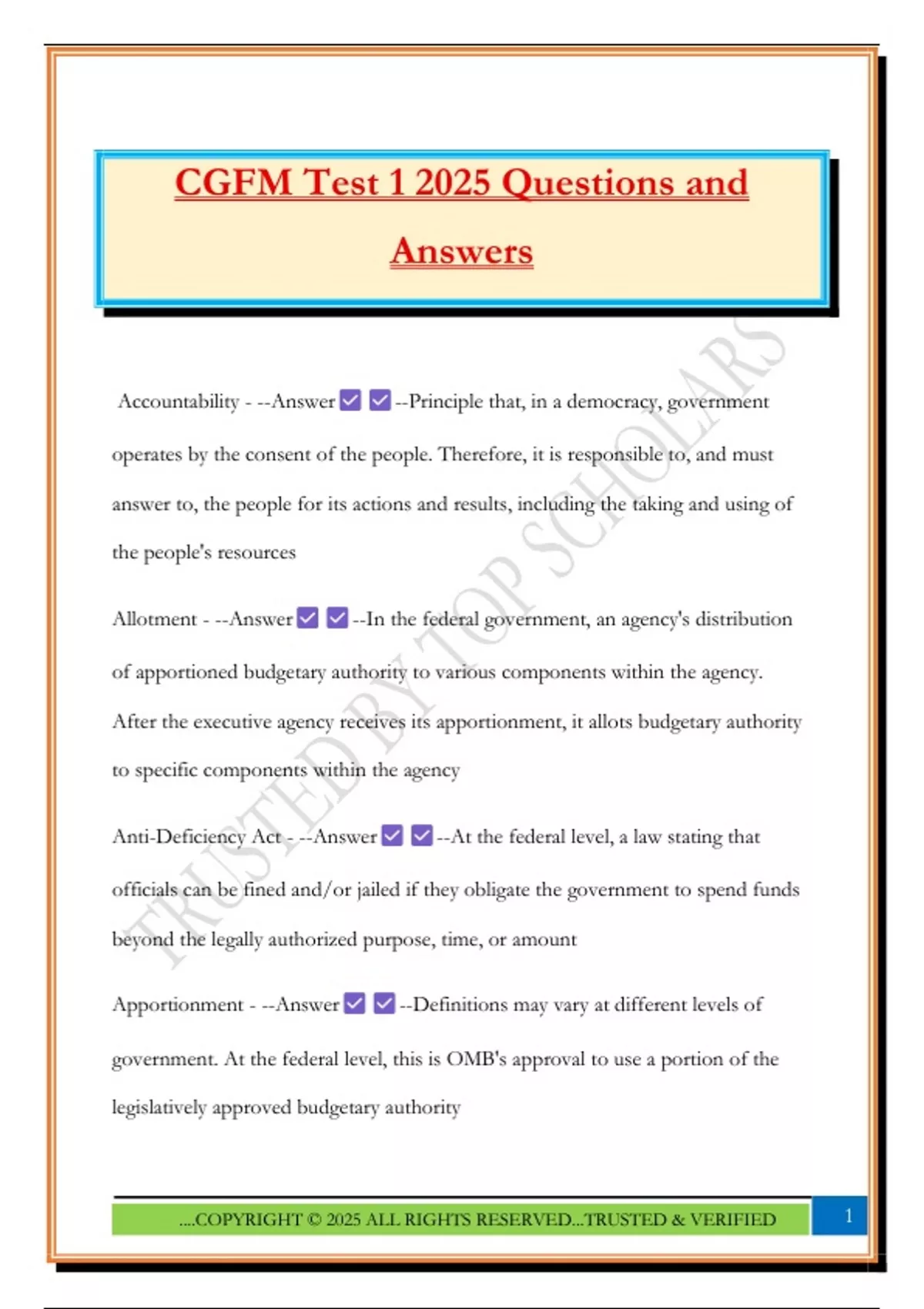 CGFM Test 1 2025 Questions and