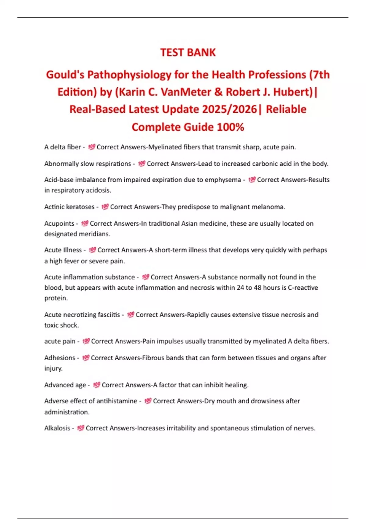 acute pain - Correct Answers-Pain impulses usually transmitted by myelinated A delta fibers.