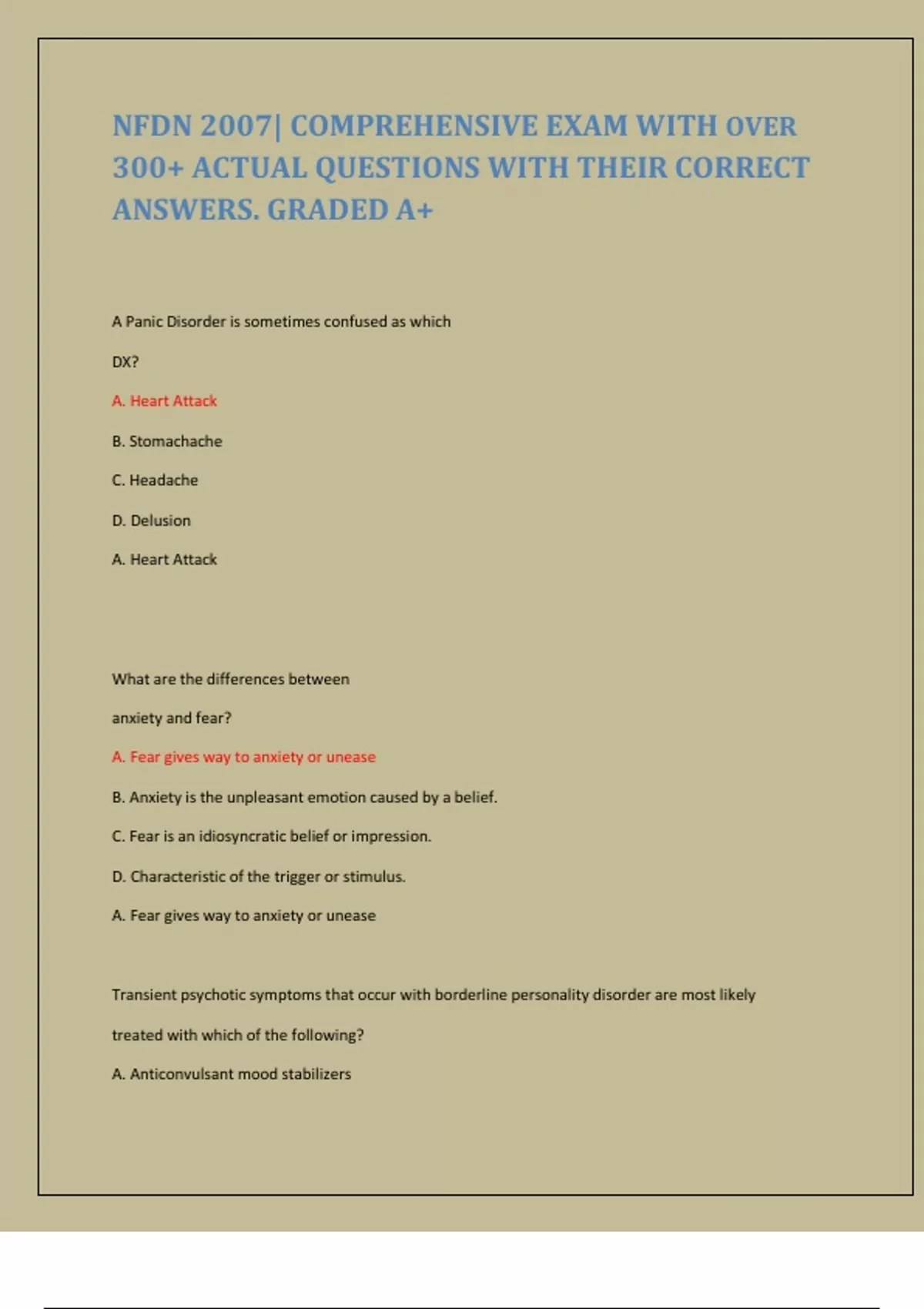 300+ ACTUAL QUESTIONS WITH THEIR CORRECT