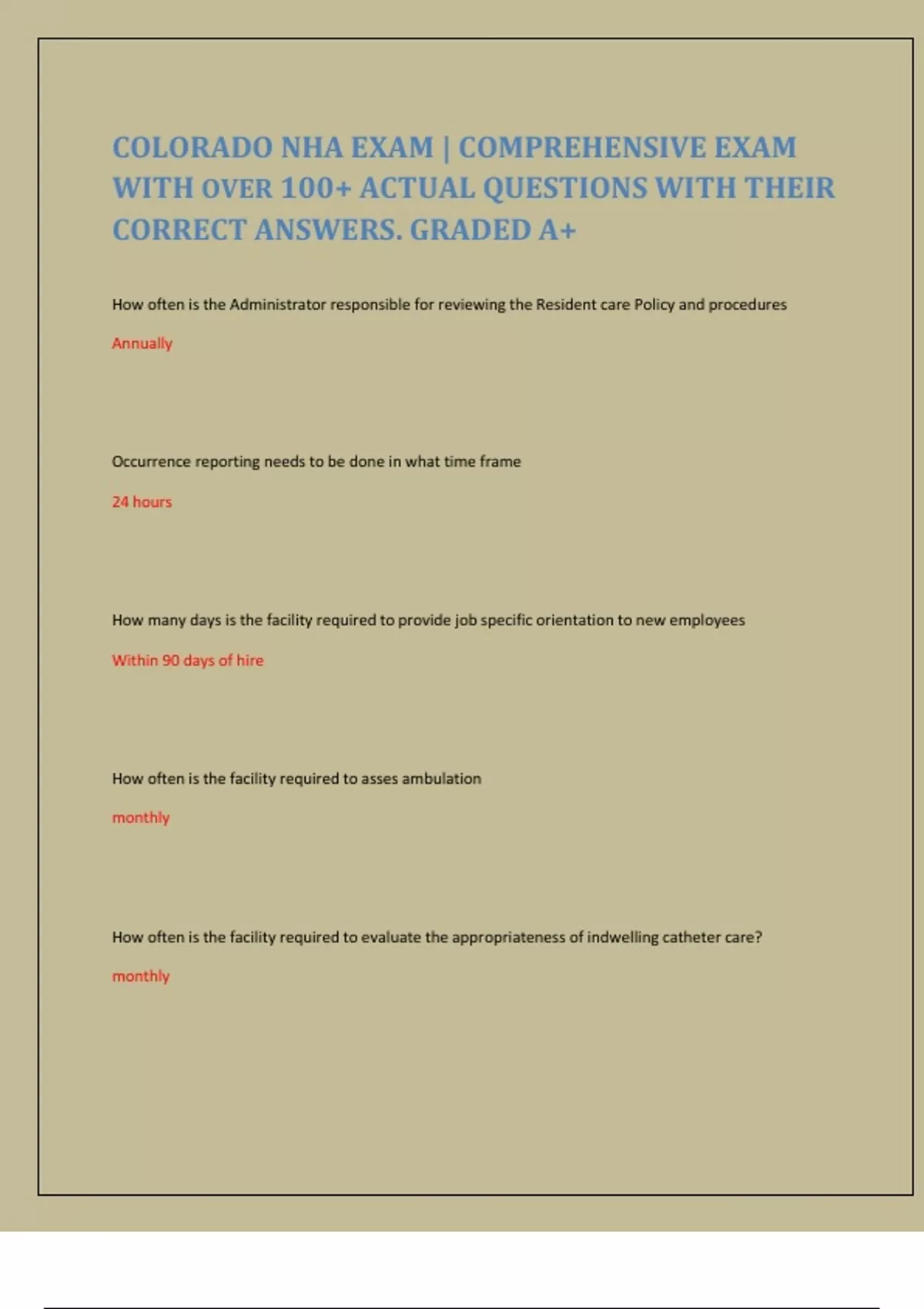COLORADO NHA EXAM | COMPREHENSIVE EXAM WITH OVER 100+ ACTUAL QUESTIONS WITH THEIR CORRECT ANSWERS. GRADED A+