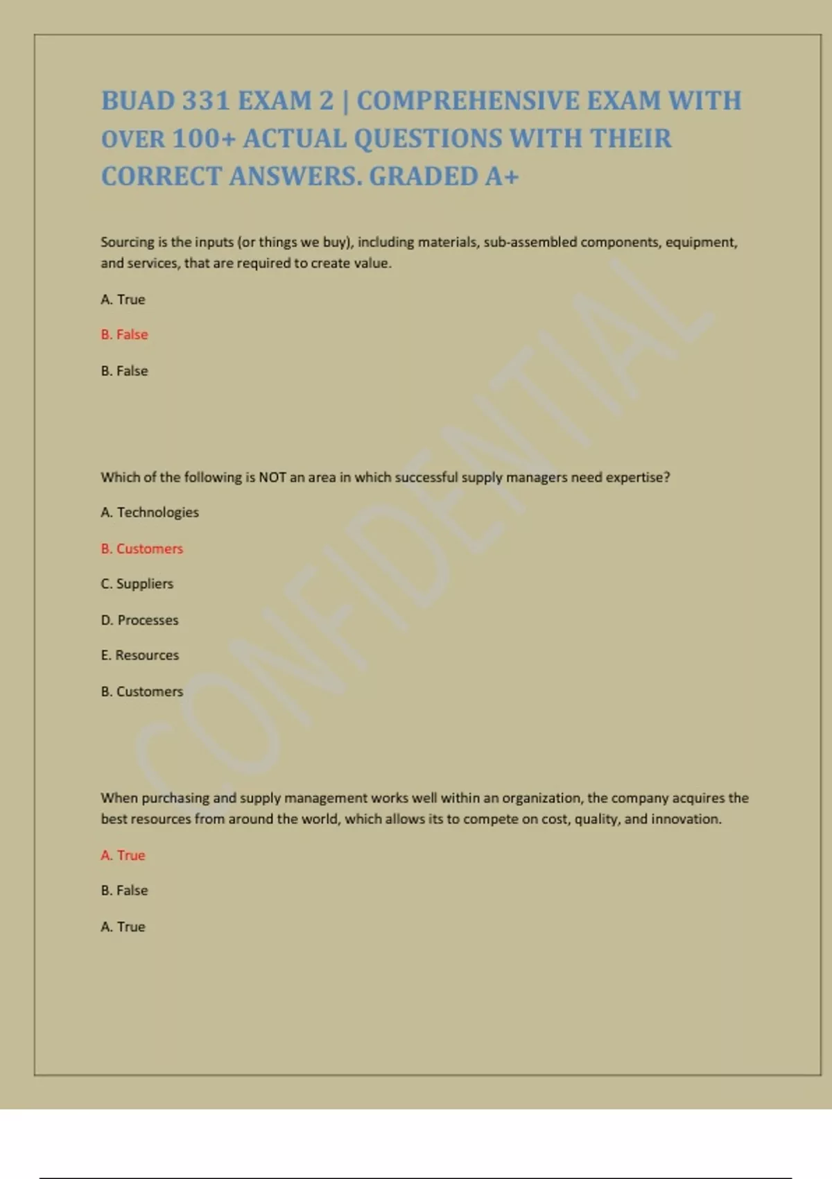 BUAD 331 EXAM 2 | COMPREHENSIVE EXAM WITH OVER 100+ ACTUAL QUESTIONS WITH THEIR CORRECT ANSWERS. GRADED A+
