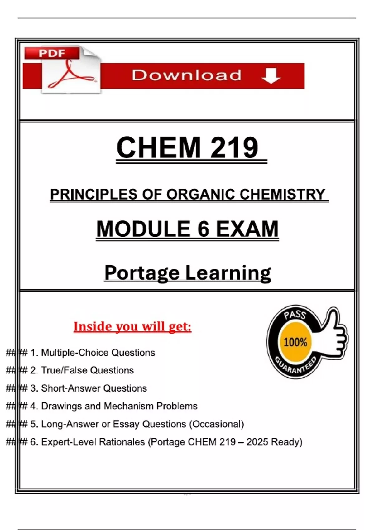 INSTANT DOWNLOAD PDF – This CHEM 219 Module 6 Exam from Portage Learning (2025) includes fully verified questions and answers covering carbonyl chemistry, specifically aldehydes and ketones. Topics include structure and nomenclature, nucleophilic addition reactions, oxidation-reduction processes, and important reagents. Designed for Portage and Geneva College students preparing for success in Module 6 of Principles of Organic Chemistry. organic chemistry exam, CHEM 219, Portage Learning, Geneva College, module 6 exam, CHEM 219 test, principles of organic chemistry, organic chemistry quiz, college chemistry exam, organic chemistry assessment, 2025 chemistry exam, chemistry course materials, chemistry study guide, module 6 organic chemistry, chemistry exam preparation, CHEM 219 Portage Learning, chemistry online exam, organic chemistry syllabus, higher education chemistry, chemistry marketplace, chemistry student resources, college chemistry, learn organic chemistry, chemistry exam answers, chemistry practice test, #OrganicChemistry