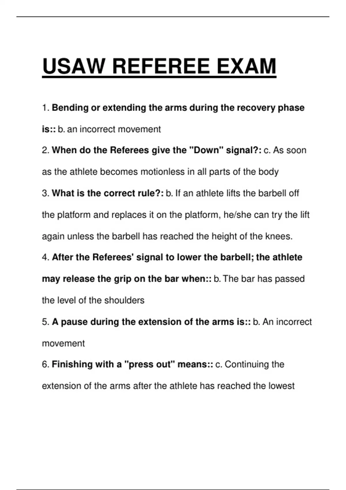 USA Weightlifting Referee Exam – Local Certification Answer Key (USAW, 2025) for Squad Preparation