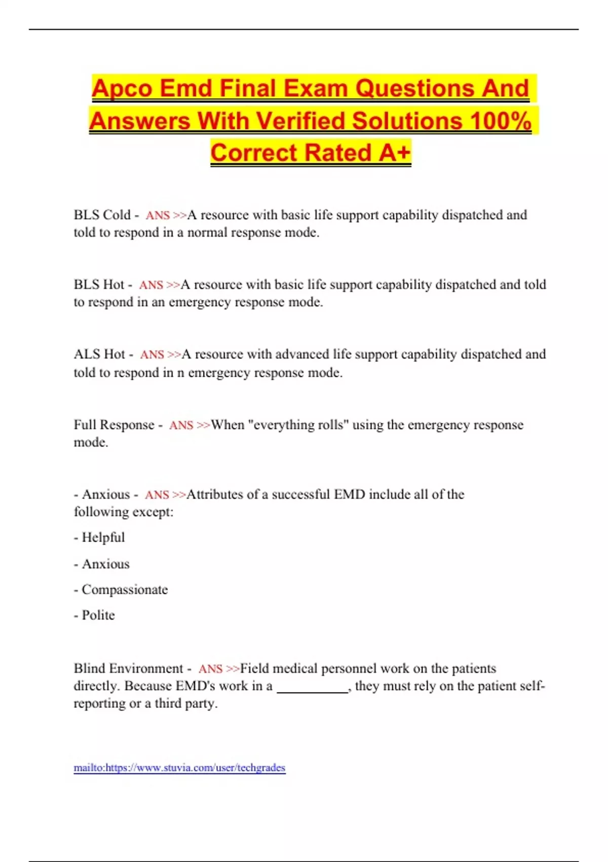 Apco Emd Final Exam Questions And Answers With Verified Solutions 100% Correct Rated A+