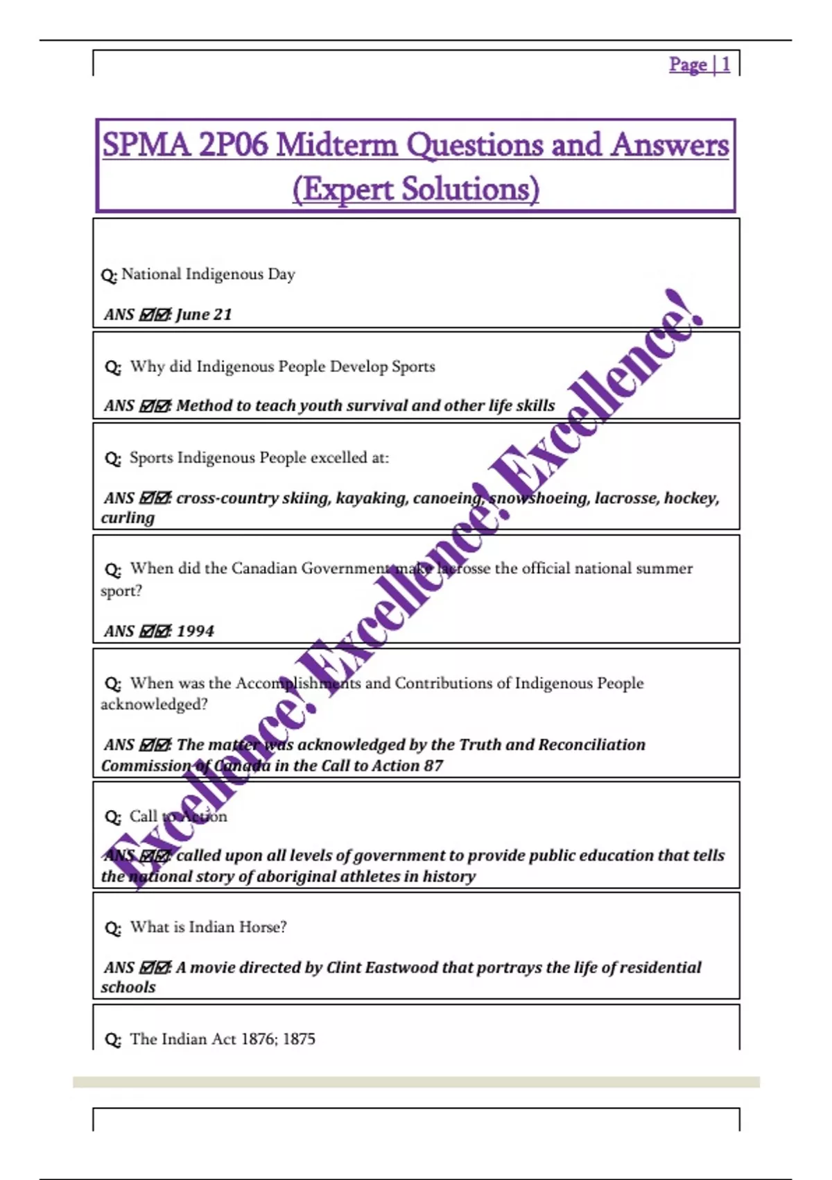 SPMA 2P06 Midterm Questions and Answers