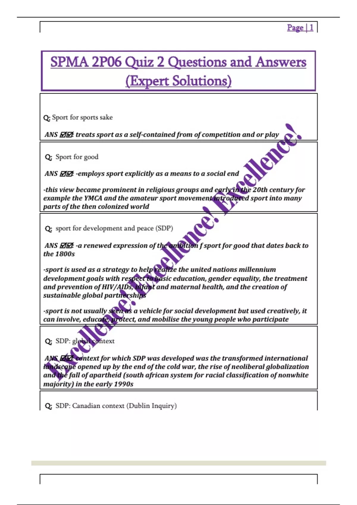 SPMA 2P06 Quiz 2 Questions and Answers