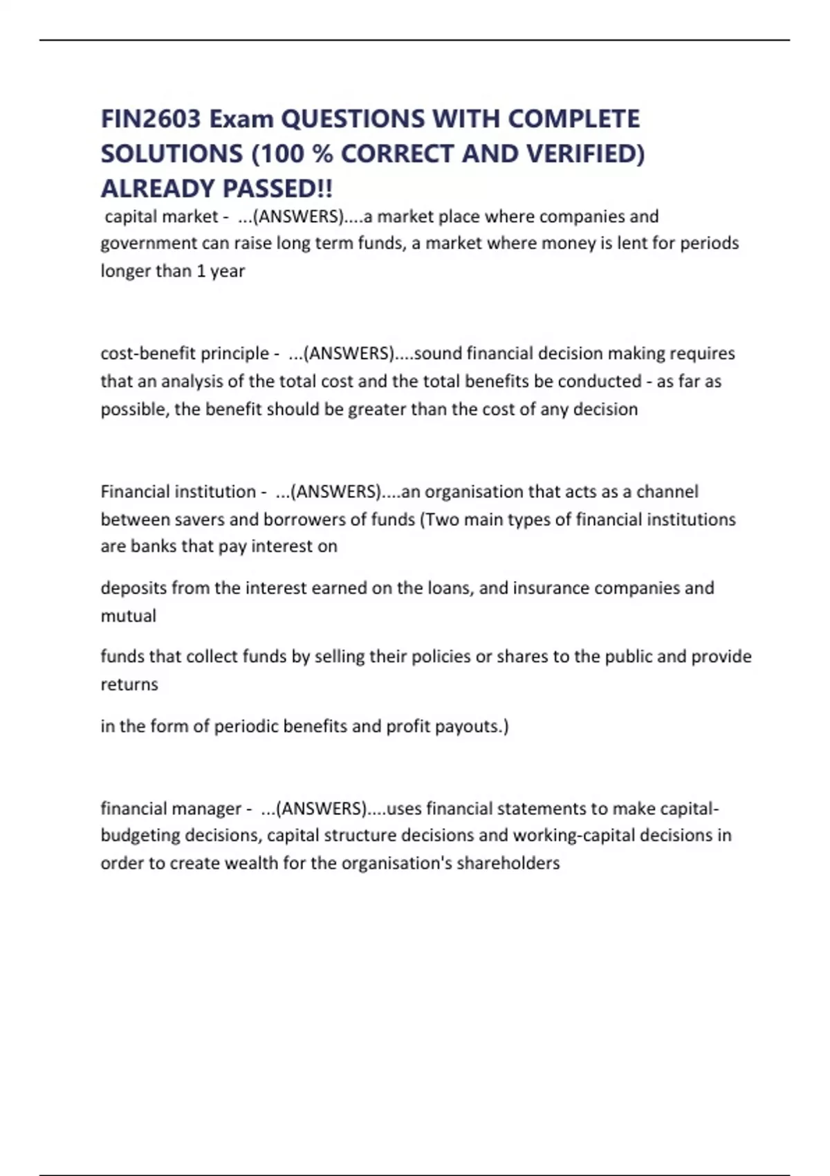 FIN2603 Exam QUESTIONS WITH COMPLETE