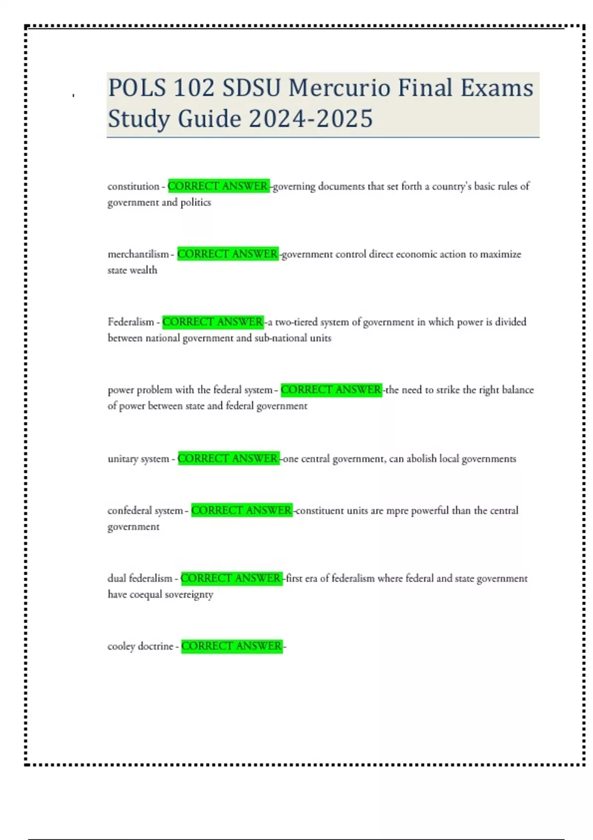 POLS 102 SDSU Mercurio Final Exams Study Guide