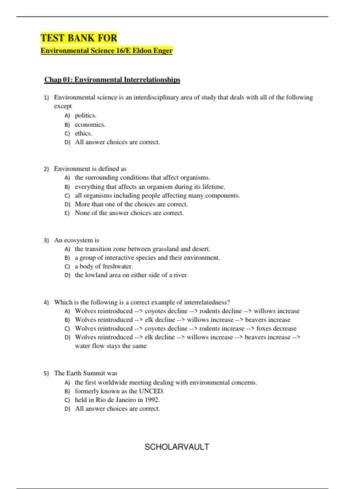 1) Environmental science is an interdisciplinary area of study that deals with all of the following