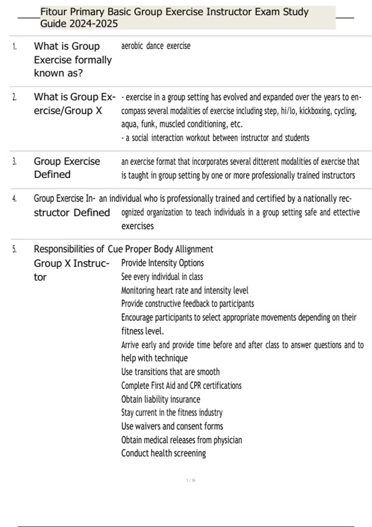 Fitour Primary Basic Group Exercise Instructor Exam Study Guide