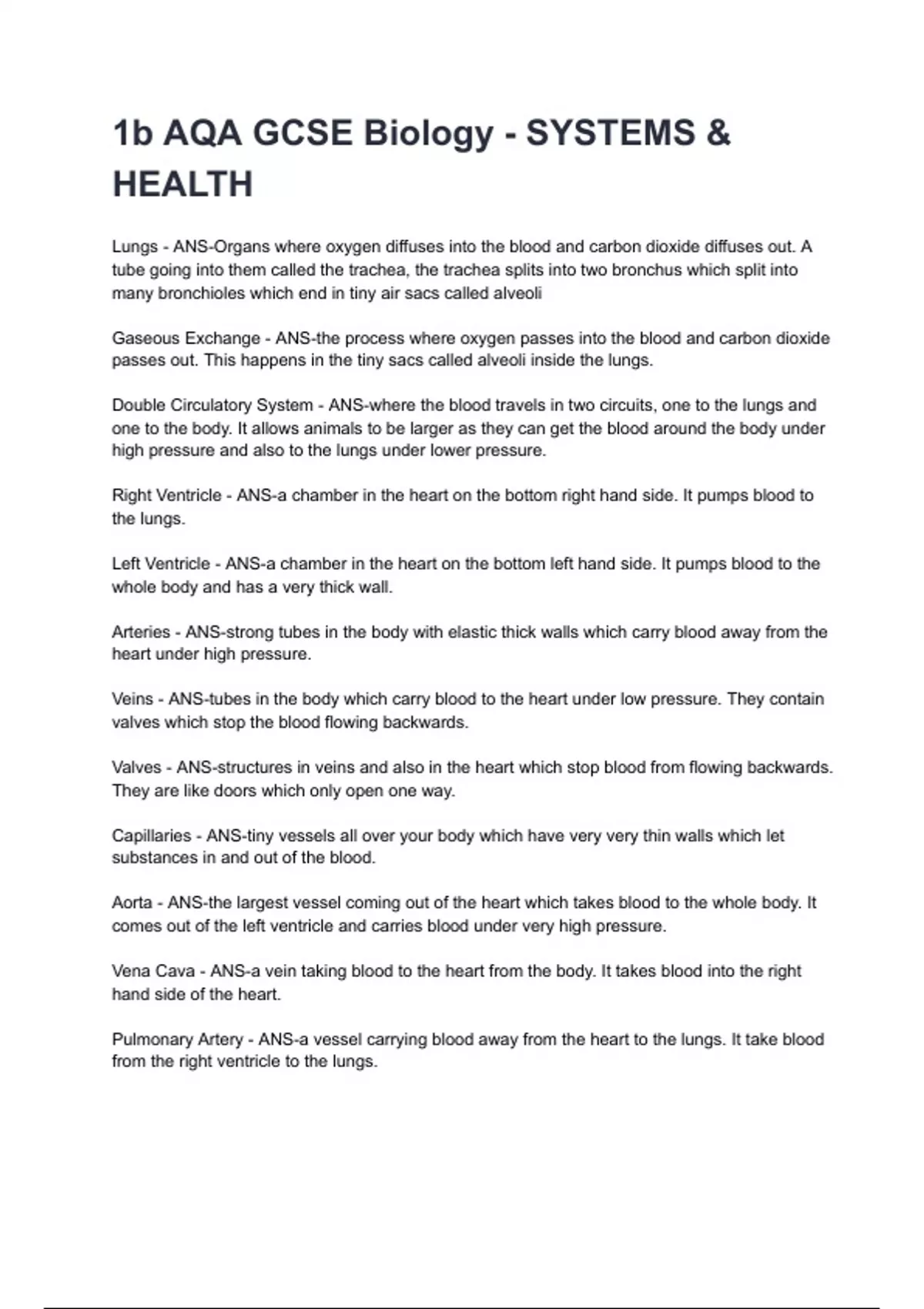 1b AQA GCSE Biology - SYSTEMS &