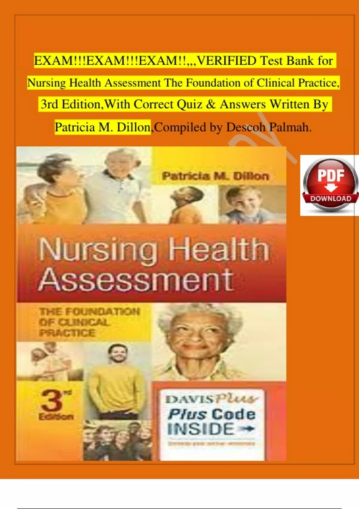 COMPLETE!!!!!!! Test Bank for Nursing Health Assessment The Foundation of Clinical Practice, 3rd Edition,With Correct Quiz & Answers Written By Patricia M. Dillon,Compiled by Descoh Palmah.