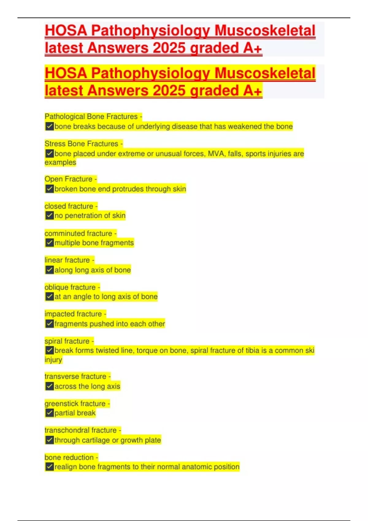 , HOSA Pathophysiology Muscoskeletal