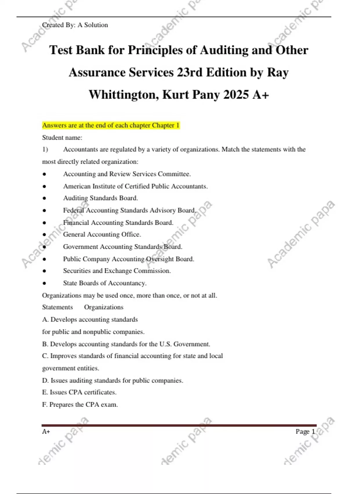 8) Historically, which of the following has the AICPA been most concerned with providing?