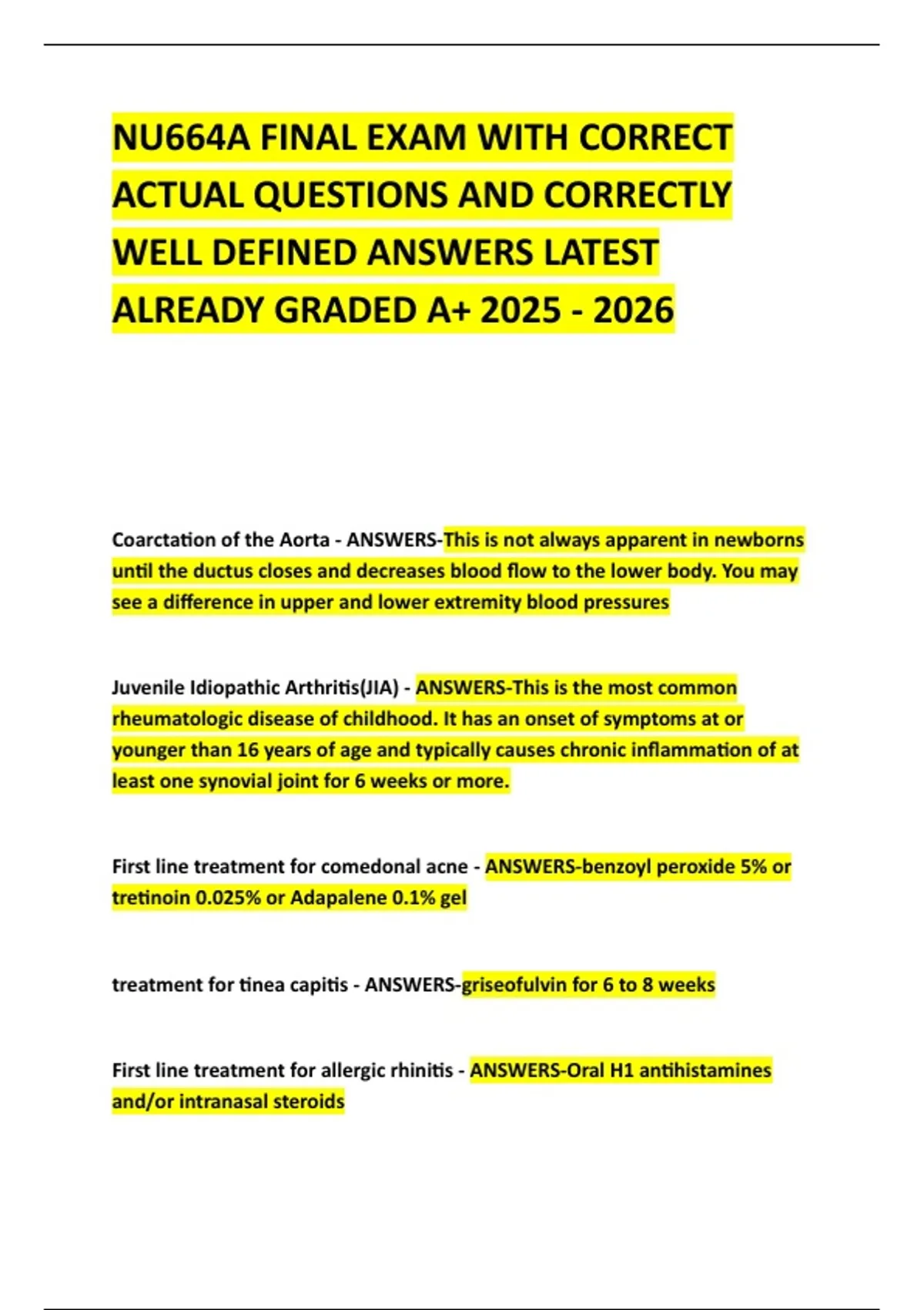 NU664A FINAL EXAM WITH CORRECT ACTUAL QUESTIONS AND CORRECTLY WELL DEFINED ANSWERS LATEST ALREADY GRADED A+