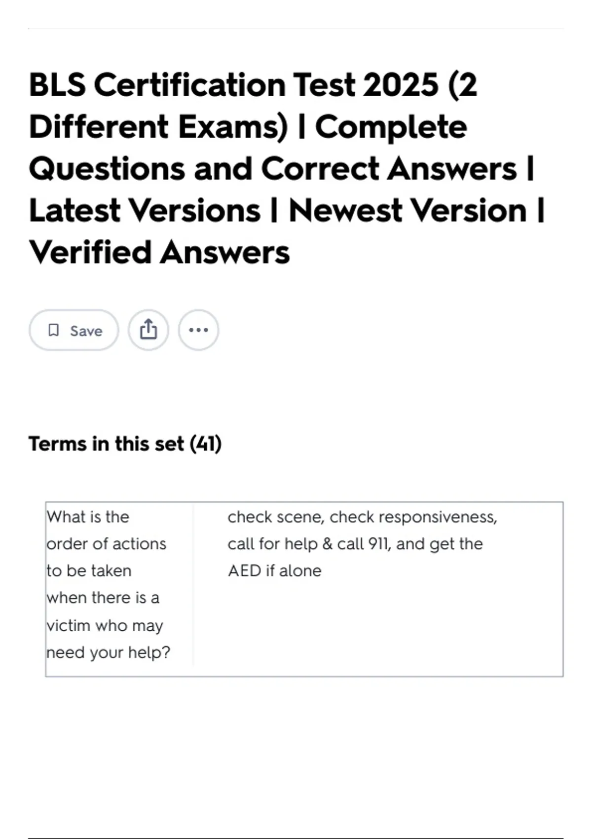 BLS Certification Test 2025 (2 Different Exams) | Complete Questions and Correct Answers | Latest Versions | Newest Version | Verified Answers