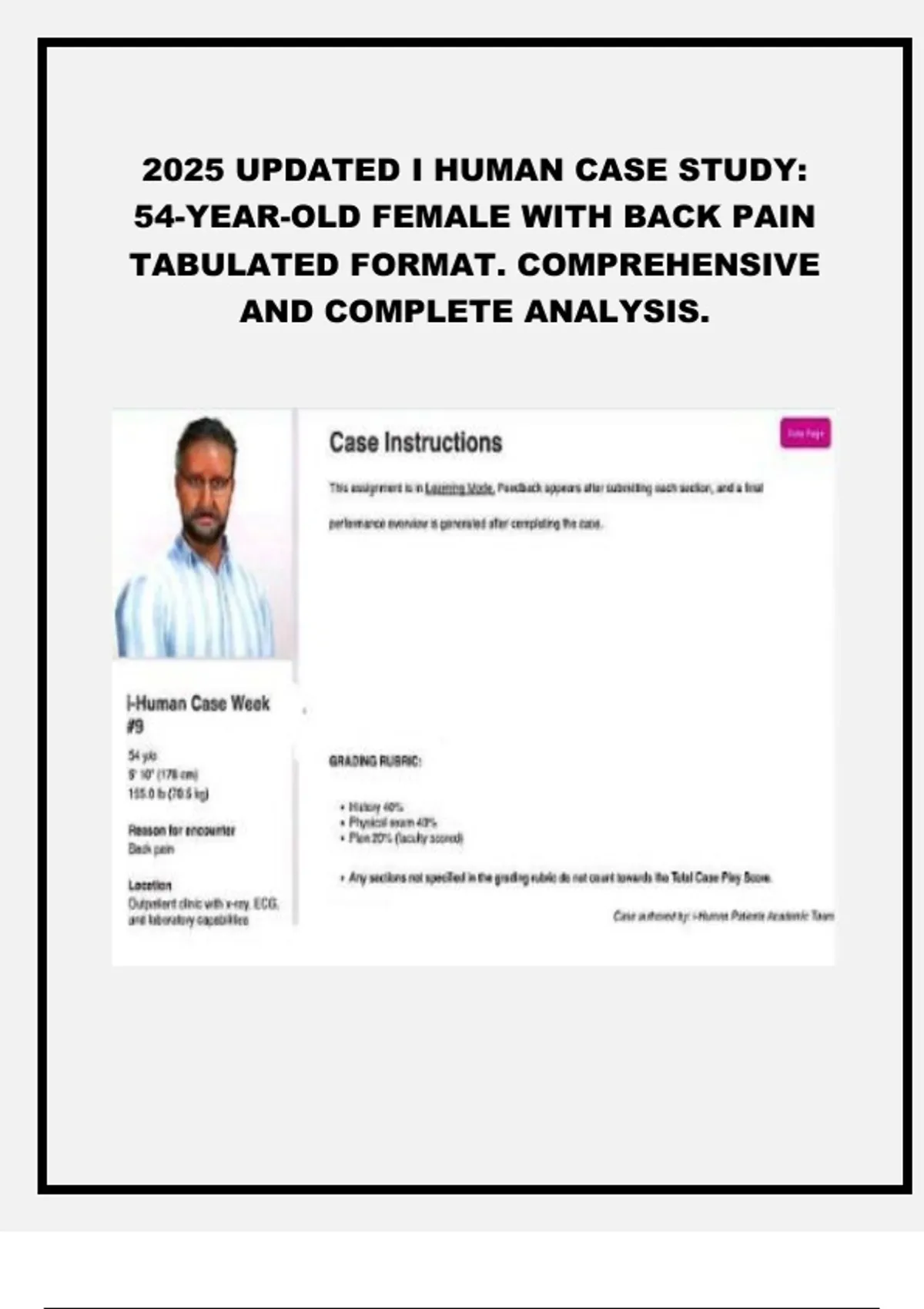 2025 UPDATED I HUMAN CASE STUDY: 54-YEAR-OLD FEMALE WITH BACK PAIN TABULATED FORMAT. COMPREHENSIVE AND COMPLETE ANALYSIS