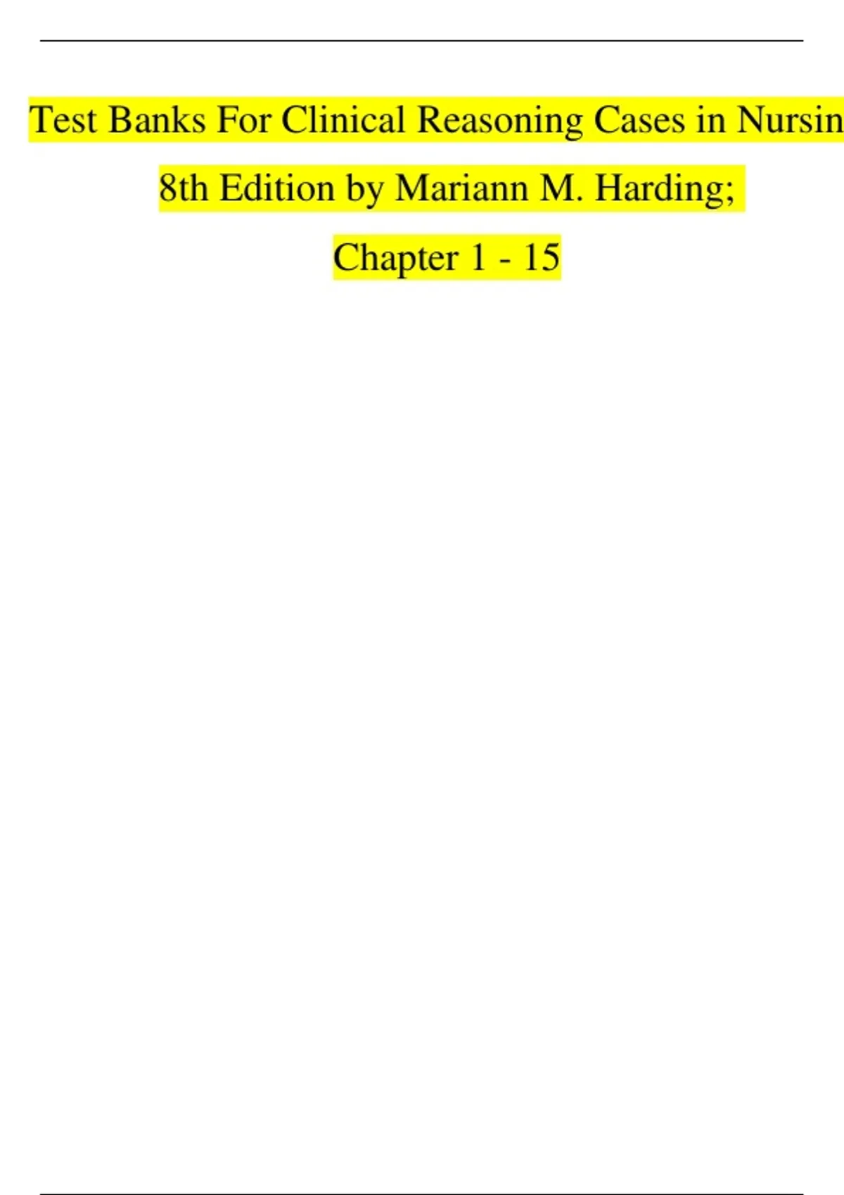 ,Clinical Reasoning Cases in Nursing 8th Edition Harding Snyder Test Bank