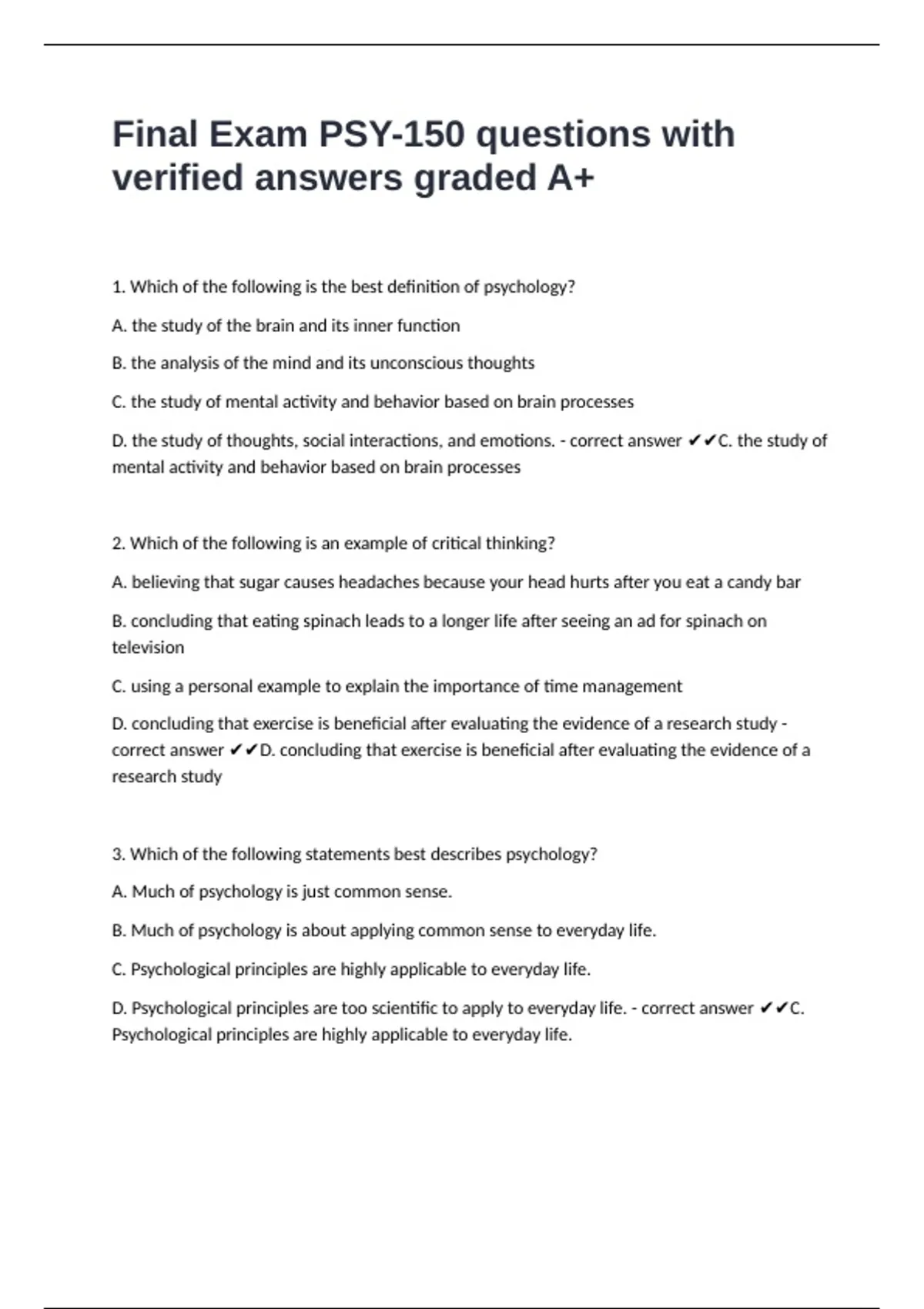 D. Psychological principles are too scientific to apply to everyday life. - correct answer ✔✔C.