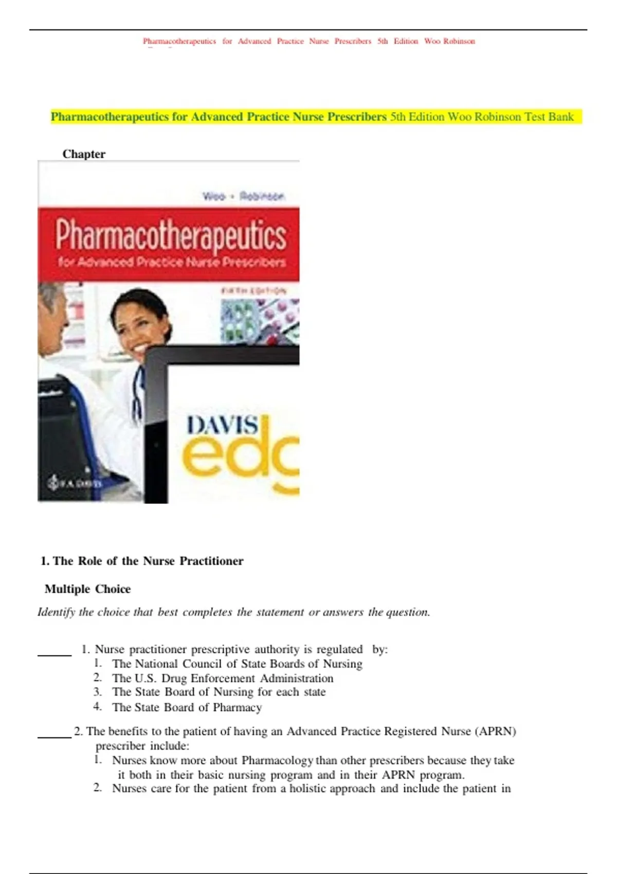 PharmacotherapeuticsqforqAdvancedqPracticeqNurseqPrescribersq5thqEditionqWooqRobinsonqTestqBank